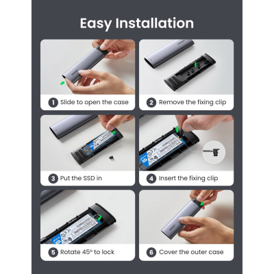 Зовнішня кишеня для жорсткого диска UGREEN 10902 з роз'ємом стандарту USB-C призначений для SSD M-Key або El B-Key NVMe PCIe. Ідеально підходить для клонування файлів, резервного копіювання даних, повторного використання старих SSD M. 2, розширення простору для зберігання Детальніше: