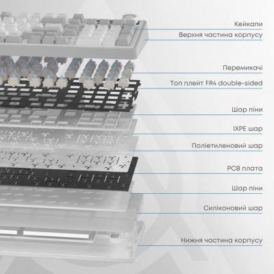 Гаскетна структура зменшує рівень шуму та забезпечує приємні відчуття під час натискання клавіш. Вбудований акумулятор дозволяє користуватися клавіатурою тривалий час без підзарядки, що особливо зручно для мобільних користувачів.