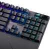 В залежності від конфігурації, ROG Strix Scope II X оснащується ковпачками з довговічного PBT-пластику або з ABS із захисним УФ-покриттям. Обидва варіанти вирізняються стійкістю до зношування та приємною текстурою поверхні. Особливої уваги заслуговує пробіл — фірмова клавіша з УФ-покриттям, унікальним маркуванням і трьома вбудованими RGB-світлодіодами, що підкреслюють характерний стиль ROG.