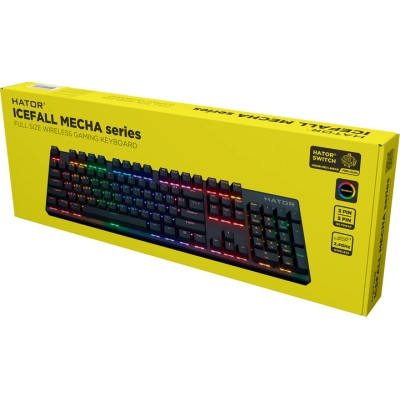 HATOR Icefall Mecha – бездротова механічна ігрова клавіатура базового рівня, яка задовольнить потреби більшості пересічних гравців. Клавіатура пропонує лінійні перемикачі з м’яким натисканням, яскраве підсвічування і можливість налаштувань в програмному забезпеченні.