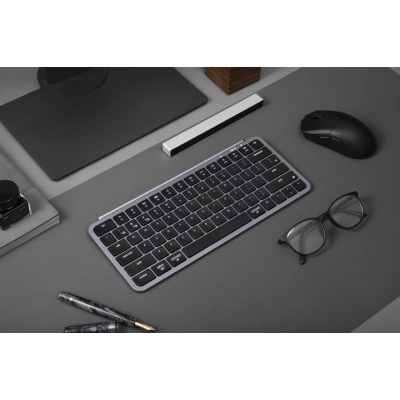 Ідеально пасуючи до будь-якого робочого місця, витончений дизайн у компактному форматі та стильний колір Space Gray додають вишуканості та гармонії. Змінні клавіші надають індивідуальності, дозволяючи підлаштувати клавіатуру під ваші особисті уподобання.