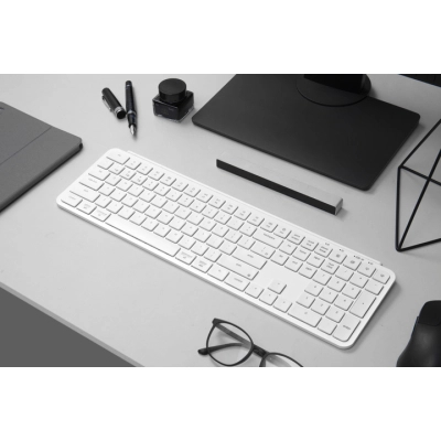 Ця клавіатура підтримує бездротове та дротове підключення — ви легко підключитесь через USB, Bluetooth, або USB адаптер 2.4 ГГц. Можливість підключення до трьох пристроїв одночасно через Bluetooth дозволяє з легкістю перемикатися між ними, що підвищує вашу продуктивність.
