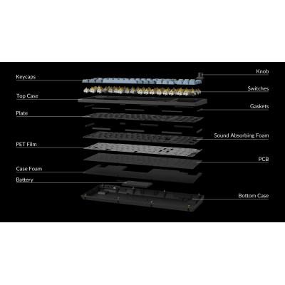 Ергономічний дизайн з прокладкою та звукопоглинальною піною знижує рівень шуму і підвищує комфорт, що дозволяє довго насолоджуватись тривалою роботою без втоми. Подвійні ковпачки з PBT не тільки приємні на дотик, але й забезпечують довговічність, запобігаючи зношуванню і зберігаючи естетичний вигляд.