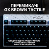 Перемикач GX Brown сигналізує про спрацьовування легкою віддачею, завдяки якій користувач може переконатися в тому, що клавіша спрацювала, і точно визначити, коли це сталося. Попри це, перемикачі працюють тихо, не відвертаючи уваги гравця й навколишніх навіть під час найбільш напружених ігрових сеансів. Перемикачі з тактильним відгуком ідеально підійдуть прихильникам екшнів із виглядом від першої особи й учасником ігрових турнірів.