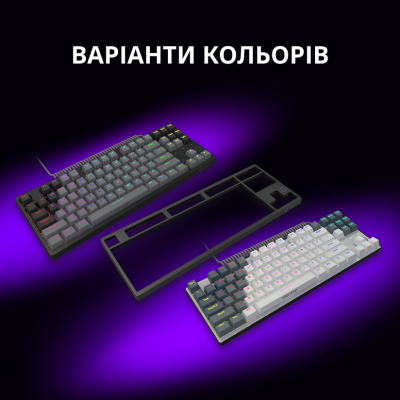 Формат TKL (Tenkeyless) з 87 клавішами позбавляє від зайвих елементів, надаючи більше простору для миші, що надзвичайно важливо під час динамічних ігор. Це компактне рішення дозволяє зберегти всю необхідну функціональність без зайвих компромісів.