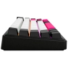 66-клавішний дизайн дозволяє зменшити розмір клавіатури, зберігаючи всі основні функції. Відсутність цифрового блоку, ряду F-клавіш і часткове об'єднання навігаційних клавіш допомагає економити місце на столі, не жертвуючи комфортом під час друку або гри.
