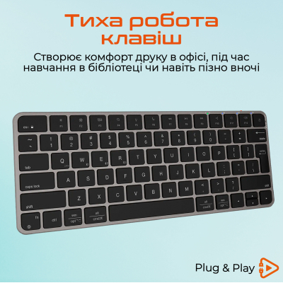 мультимедійна, для планшета, для телевізора, для смартфонів, ножична, бездротова, Bluetooth, USB адаптер 2.4 ГГц, компактна, англійська, українська, Клавіш - 78, 282 x 117 x 11 мм, 378 г
