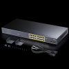 Комутатор оснащений 18-ма портами, 16 з яких Gigabit PoE+ та 2 Gigabit SFP для підключення до оптоволоконної мережі на великих відстанях.