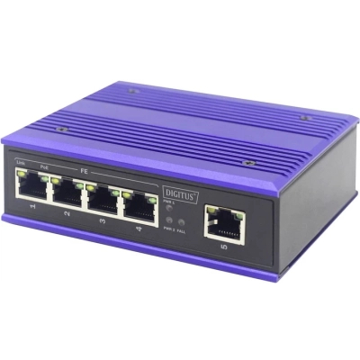 Промисловий комутатор Fast Ethernet DIGITUS® розроблений для суворих умов експлуатації, де він піддається впливу вологи, коливань температури та вібрації. Промисловий комутатор Fast Ethernet може використовуватися в найнесприятливіших умовах. Порти PoE з підтримкою IEEE802.3af/at можуть забезпечувати пристрої з підтримкою PoE потужністю до 30 Вт на порт.