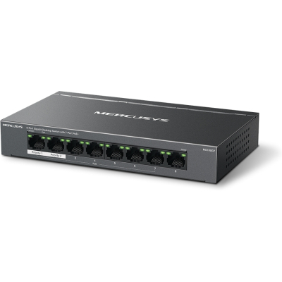 MS108GP підтримує автоматичне узгодження швидкості (10/100/1000 Мбіт/с) та автоматичне визначення MDI/MDIX. Комутатор не вимагає додаткового налаштування, що дозволяє заощадити час та сили.