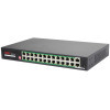 Некерований комутатор AI PoE з 24 х 10/100M PoE портами і 2 х 10/100/1000M uplink RJ45 портами і 1 х 1000M SFP комбінованим портом. Порти 1-24 підтримують стандарт IEEE802.3af/at PoE. Відрегулюйте перемикач функцій, порт 17-24 може підтримувати передачу 10M/250 метрів. Ізоляція VLAN, самовідновлення ШІ, індикація живлення та пріоритет живлення. Підтримує установку в шафу 1U/19 дюймів.