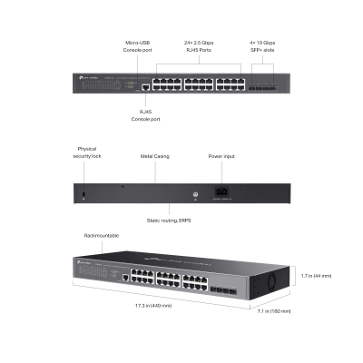 TP-LINK SG3428X-M2 – це керований L2+ комутатор із 24 портами 2.5G та чотирма високошвидкісними SFP+ 10G. Він створений для мереж, де потрібна висока пропускна здатність і стабільне з’єднання. Пристрій підтримує як централізоване хмарне керування Omada, так і локальні інструменти адміністрування. Комутатор оснащено широкими можливостями для маршрутизації, VLAN, безпеки та контролю трафіку. Міцний металевий корпус і підтримка монтажу в стійку забезпечують довготривалу роботу.