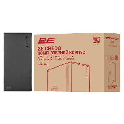 Корпус 2E Credo V200B акуратний і компактний, з класичною передньою панеллю з металу, відмінно підійде для самостійного та промислового складання, завдяки раціонально організованому внутрішньому простору і не складній конструкції.