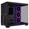 Підтримка відеокарт довжиною до 420 мм. Дві камери: внутрішній простір A32 PLUS розділено на дві камери, що дає змогу створити окремі зони охолодження для процесора та відеокарт і налаштувати їх незалежно. Панорамний вигляд: панелі із загартованого скла спереду та збоку забезпечують безперешкодний огляд основної камери системи. Широка сумісність: підтримка радіаторів довжиною до 360 мм, відеокарт довжиною до 420 мм і процесорних кулерів повітряного охолодження висотою до 165 мм. Попередньо встановлені ARGB-вентилятори: чотири вентилятори з яскравим ARGB-підсвічуванням допомагають забезпечити збалансоване охолодження. USB Type-C на передній панелі: на передній панелі A32 PLUS присутній порт USB Type-C, який підтримує швидкість обміну до 10 Гбіт/с. Панорамний огляд на 270° Завдяки відсутності передньої стійки ви отримаєте бездоганний огляд внутрішніх компонентів комп’ютера, що зробить вашу збірку центром уваги з будь-якого ракурсу.