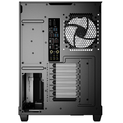 Піддон материнської плати повністю підтримує материнські плати з роз'ємами на зворотній стороні, такі як Asus BTF (Back to Future), MSI Project Zero та Gigabyte Project Stealth, для справжньої свободи від кабелів у видимій частині корпусу. Достатньо просто поміняти місцями кронштейн для накопичувачів та блок живлення.