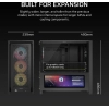 Мультимедійні, Miditower, E-ATX, ATX, Micro - ATX, Mini - ITX, Слотів розширення - 7, Вентилятори - 4 х 120 мм, Додатково - Side 3x12 or 2x14 см, GPU - до 430 мм, CPU - 170 мм, PSU - 220 мм, ARGB-підсвічування, 490 x 486 x 239, 12.35 кг, чорний