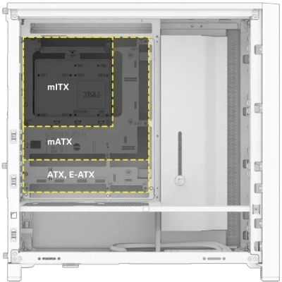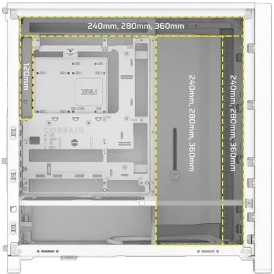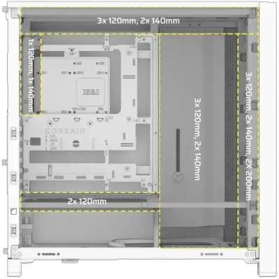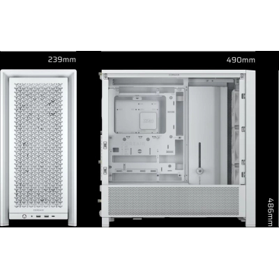 Мультимедійні, Miditower, E-ATX, ATX, Micro - ATX, Mini - ITX, Слотів розширення - 7, Вентилятори - 4 х 120 мм, Додатково - Side 3x12 or 2x14 см, GPU - до 430 мм, CPU - 170 мм, PSU - 220 мм, ARGB-підсвічування, 490 x 486 x 239, 12.35 кг, білий