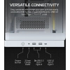 Передня панель забезпечує зручний доступ до основних портів: USB 3.2 Gen 2 Type-C, два USB 3.2 Gen 1 Type-A, а також комбінований аудіороз’єм для навушників і мікрофона.