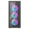 Корпус виділяється елегантним дизайном із загартованим склом на передній та боковій панелях. Це не лише додає естетики, але й дозволяє насолоджуватися внутрішньою архітектурою та підсвітками компонентів. Дизайн доповнює технологія Airflow-Mesh, яка забезпечує оптимальну вентиляцію, аби уникнути перегріву.