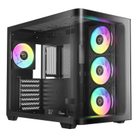 Магнітні відкидні дверцята з загартованого скла надають корпусу візуальної легкості та дозволяють демонструвати внутрішнє обладнання, що особливо оцінять геймери та ентузіасти моддинг. Цей елегантний дизайн підкреслює загальну естетику корпусу, який виглядає сучасно та стильно.