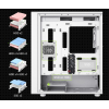 Продумана система охолодження може похвалитися підтримкою до восьми 120-мм вентиляторів, з яких чотири вже попередньо встановлені і оснащені ARGB/PWM підсвіткою. Завдяки цьому, користувачі отримують повний контроль над освітленням і продуктивністю своєї системи. Додатково, корпус готовий до встановлення рідинного охолодження, підтримуючи передні 360-мм та верхні 240-мм радіатори.