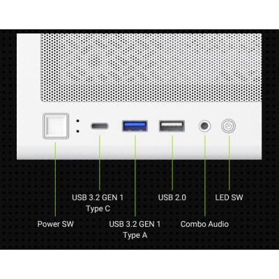 На сучасній передній панелі введення/виведення представлено широкий спектр інтерфейсів, що включають порт USB Type-C, USB 3.2, USB 2.0, а також комбіновані аудіороз'єми. Це дозволяє безперешкодно підключати необхідні периферійні пристрої та аксесуари, не турбуючися про швидкість передачі даних або якість аудіосигналу.