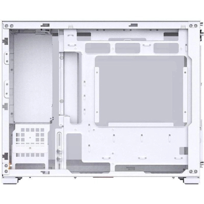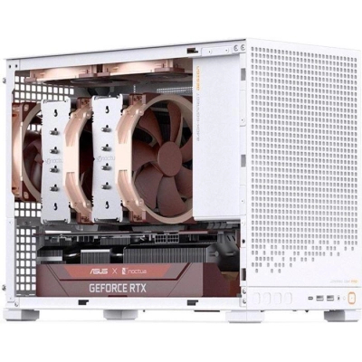 Всередині легко розміщуються материнські плати Mini-ITX та Micro-ATX. Висота процесорного кулера може сягати 170 мм, а довжина відеокарти – до 365 мм, що дозволяє використовувати більшість сучасних топових карт. Блок живлення ATX довжиною до 200 мм встановлюється у нижній частині, прихований кожухом, що додає акуратності збірці.