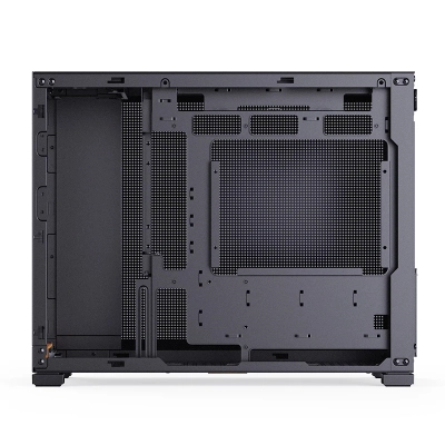 Всередині легко розміщуються материнські плати Mini-ITX та Micro-ATX. Висота процесорного кулера може сягати 164 мм, а довжина відеокарти – до 365 мм, що дозволяє використовувати більшість сучасних топових карт. Блок живлення ATX довжиною до 200 мм встановлюється у верхній частині, прихований кожухом, що додає акуратності збірці.