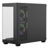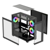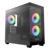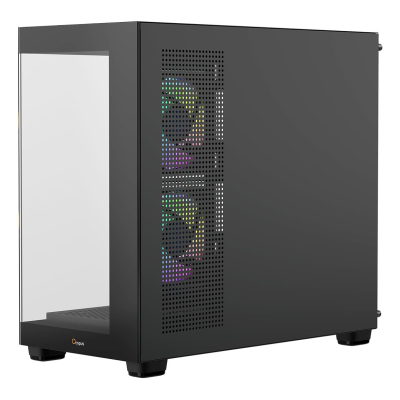 Система вентиляції корпусу розроблена з акцентом на продуктивність і тишу. Три попередньо встановлені ARGB-вентилятори діаметром 120 мм створюють потужний повітряний потік, який рівномірно охоплює всі зони корпусу. Конструкція підтримує встановлення радіаторів водяного охолодження до 360 мм зверху, що робить корпус придатним для складання як ігрових систем, так і робочих станцій із тривалим навантаженням. Оптимізована геометрія решіток і продумана циркуляція забезпечують стабільну температуру навіть при роботі високопродуктивних процесорів.