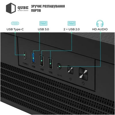 Корпус для ПК Qube FORT_GBNU3 - це інтеграція естетики і функціональності у високому стилі. Призначений для мультимедійних рішень, він втілює потужність і здатність до адаптації, неодмінно привертаючи увагу справжніх поціновувачів комп'ютерних технологій.