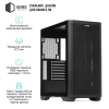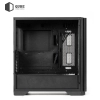 Міцна основа корпусу виготовлена з металу товщиною 0,7 мм із повністю чорним покриттям, що гарантує надійність конструкції. Фронтальна панель виконана з ABS-пластику з металевою сіткою для ефективного повітряного потоку. Ліва бокова панель із загартованого скла з чорною рамкою та кріпленням на два гвинти, права — металева, що поєднує естетику та практичність.