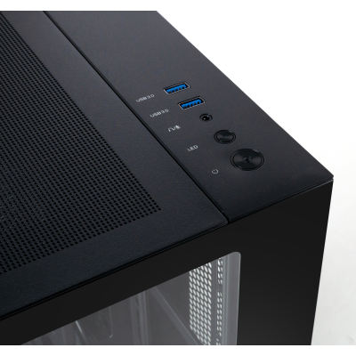 Прозора бічна та передня панелі утворюють унікальний стиль і дозволяють демонструвати красу внутрішньої конфігурації комп'ютера. Завдяки цій особливості, корпус стає не лише функціональним, але й привабливим доповненням до будь-якого робочого столу, надаючи системі більш індивідуального вигляду.