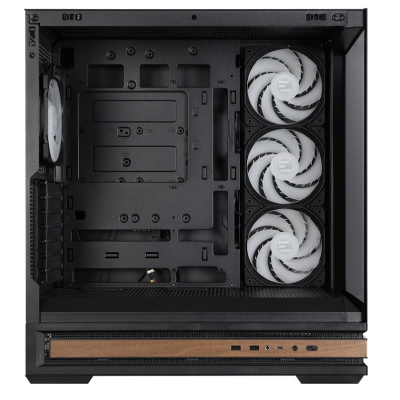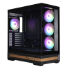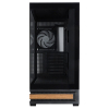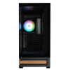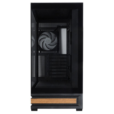 Панорамний корпус Zalman P40 NAMU BLACK для сучасної домашньої або ігрової станції, сумісний з актуальними компонентами та адаптований для BTF материнських плат. Передня та бічна панелі із загартованого скла. Додатковий дизайнерський елемент конструкції – вставка із натурального дерева по периметру корпусу. Забезпечено активне обдування компонентів за рахунок перфорації металевої поверхні панелей корпусу. Продумано захист від пилу. У комплекті 4 х 120мм ARGB вбудованих вентиляторів, концентратор та тримач для відеоадаптера. Вентилятори на бічній панелі – реверсні: забезпечують приплив повітря ззовні. Вентилятор на задній панелі працює на видуві. Корпус укомплектований усіма необхідними деталями для складання та подальшої експлуатації, є стандартні сучасні актуальні інтерфейси та роз'єми.
