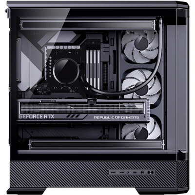 Елегантний корпус для ПК створений для тих, хто цінує поєднання стилю та функціональності. Його сучасний мінімалістичний дизайн гармонійно впишеться як у робочий простір, так і в ігрову станцію, підкреслюючи естетику зібраної системи.