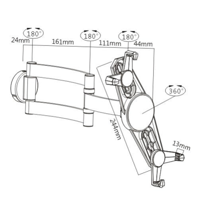 Встановивши його на стіл, ви можете легко перетворити його на складену настільну підставку, яка працюватиме як будь-яка інша настільна підставка. Настінний монтаж за допомогою складних і висувних кронштейнів дозволяє економити місце зберігання, а також забезпечить багатокутний перегляд. Обертання на 360°, поворот на 180° та нахил ± 45° дозволяють легко налаштувати Ваш планшет на найзручніший кут огляду, який Вам потрібен.