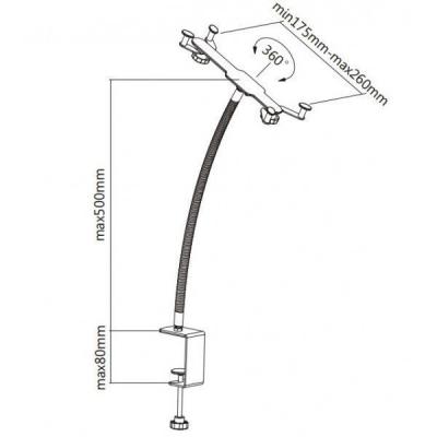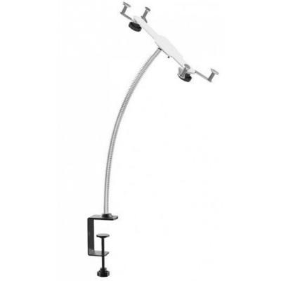 Кріплення, що знаходиться в основі, легко закріплюється на кришку столу і виключає падіння вашого гаджета. Гнучка трубка дозволяє поставити планшет під потрібним кутом, а шарнір дає свободу обертання на 360°. Відстань між затискачами легко регулюється в діапазоні від 175 до 260 мм, що дозволить використовувати гаджети різних розмірів. Дизайн з пластику та металу відмінно гармонує з будь-яким інтер'єром і гарантує практичність і довговічність користування тримачем.