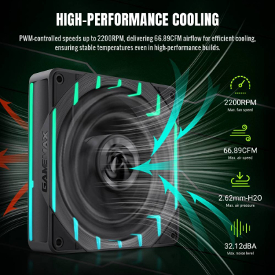 • Потужне охолодження: Завдяки ШІМ-регулюванню температури він досягає високої швидкості 2200 об/хв та забезпечує потужний повітряний потік 66.89 кубічних футів за хвилину, забезпечуючи стабільну роботу хоста під великими навантаженнями.