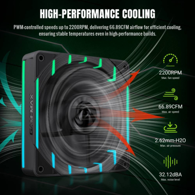 • Потужне охолодження: Завдяки ШІМ-регулюванню температури він досягає високої швидкості 2200 об/хв та забезпечує потужний повітряний потік 66.89 кубічних футів за хвилину, забезпечуючи стабільну роботу хоста під великими навантаженнями.