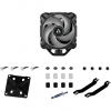 Для процесорів - INTEL, AMD, сокет - 1150, 1151, 1155, 1200, 1700, 1851, матеріал радіатора - алюміній, діаметр вентиляторів - 120 мм, Максимальна частота обертів - 1700 об/хв, Тип підшипників - гідродинамічний (FDB Bearing), рівень шуму - 23.8 dB, роз'єми живлення - 3-pin, 4-pin, Підсвічування - ARGB, 4 теплові трубки