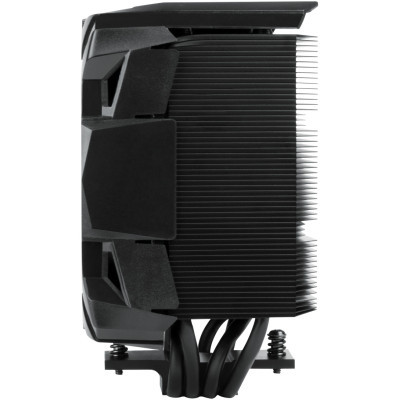 Оптимізована продуктивність поєднується з сучасним чорним дизайном та безшумною роботою. Завдяки чотирьом зміщеним тепловим трубкам процесорний кулер з однією вежею забезпечує швидку передачу тепла в радіатор, звідки можна ефективно розсіювати його за допомогою 120-мм вентилятора.