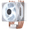 Для процесорів - INTEL, AMD, під сокет - FM2, 2011-3, 1151, AM4, 2066, 1200, FM2+, 1150, 1155, 1156, 1366, 2011, AM2, AM2+, AM3, AM3+, FM1, матеріал радіатора - алюміній + мідь (вставка), діаметр вентиляторів - 92 мм, максимальна швидкість обертання вентиляторів - 2000 об/хв, рівень шуму - 29 dB, роз'єми живлення - 4-pin, Подсветка - біла, 4 теплові трубки