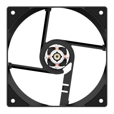 Кулер оснащений вентилятором AS-120-K V2, який працює з максимальним рівнем шуму 27.2 дБ(A). На корпусі вентилятора є позначки, що вказують напрямок обертання лопатей та напрямок потоку повітря.