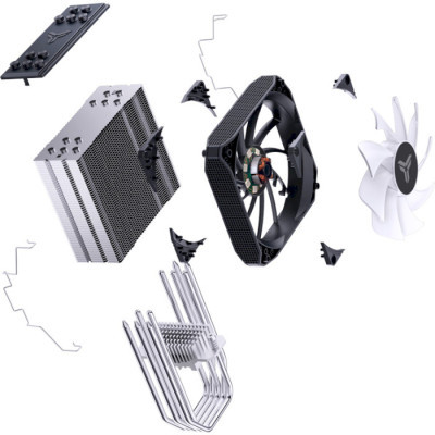 Для процесорів - INTEL, AMD, сокет - AM5, 1150, 1151, 1155, 1156, 1200, 1700, 1851, матеріал радіатора - алюміній + мідь, діаметр вентиляторів - 120 мм, Максимальна частота обертів - 1850 об/хв, Тип підшипників - гідродинамічний (FDB Bearing), рівень шуму - 37 dB, роз'єми живлення - 4-pin PWM, Підсвічування - ARGB, 5 теплових труб