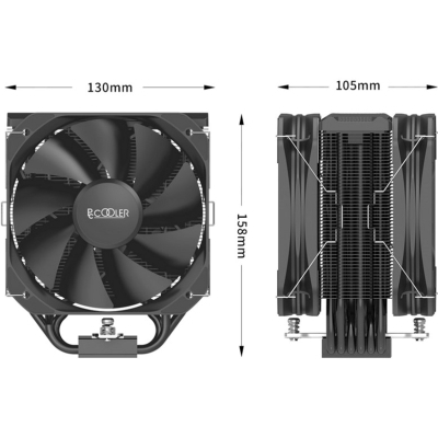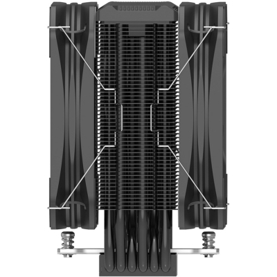 Комбінація двох динамічних вентиляторів PF130. Два високопродуктивні вентилятори PF130 забезпечують повітряний потік в 81 фут3/хв, зберігаючи низький рівень шуму. Велика площа ребер охолодження. Корпус радіатора має 50 ребер, які забезпечують площу розсіювання тепла 5900 см2. Це дозволяє повністю поглинати тепло теплових трубок.