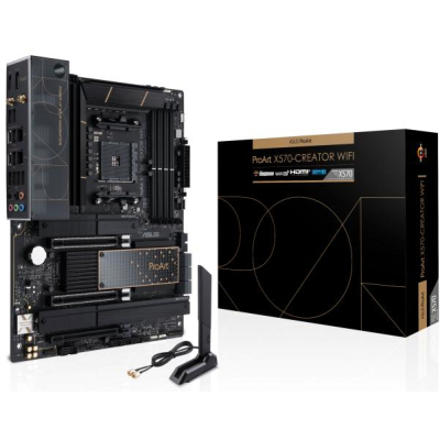Материнська плата ProArt X570-CREATOR WIFI для творців контенту. Адаптована для спеціалістів різних сфер, професіоналів творчих галузей, дизайнерів. Переваги цієї плати полягають у підтримці новітніх процесорів AMD Ryzen, наявності ефективної системи охолодження, швидкісних інтерфейсів і засобів забезпечення інформаційної безпеки.