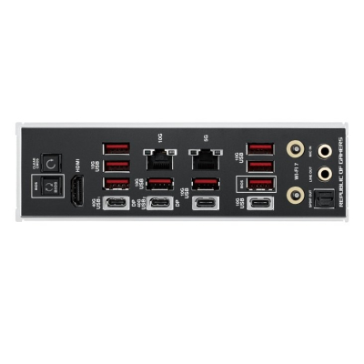 Материнська плата пропонує п’ять слотів M.2, два з яких підтримують PCIe 5.0 x4, а три — PCIe 4.0 x4 через ROG Q-DIMM.2. Також передбачено чотири порти SATA 6Gb/s.