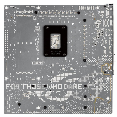 ROG STRIX B860-G GAMING WIFI має гладкий мінімалістичний дизайн, який легко поєднується з різними компонентами системи. Друкована плата глибокого чорного кольору та металеві радіатори надають їй зухвалого, насиченого вигляду, а L-подібна задня панель додає не тільки стилю, а й практичного захисту від гострих країв.
