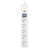 Кількість розеток - 5, Довжина кабелю - 3 м, заземлюючий контакт, із загальним вимикачем, Захист - від перепадів напруги, Колір - білий