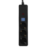 Кількість розеток - 3, Довжина кабелю - 1 м, заземлюючий контакт, із загальним вимикачем, Колір - чорний