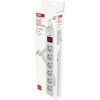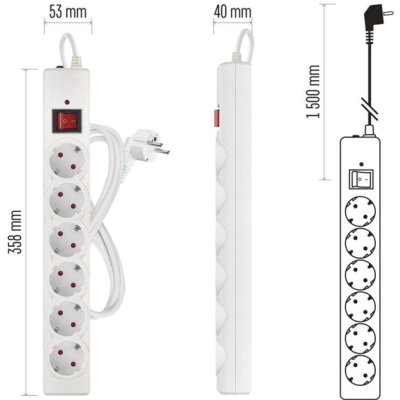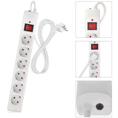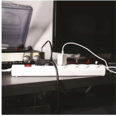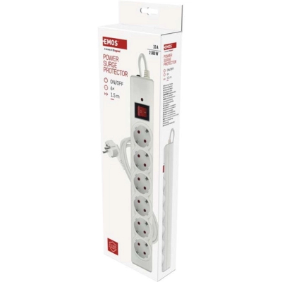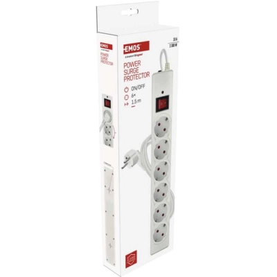 Компактний мережевий фільтр EMOS P54215 на 6 розеток забезпечує надійний захист підключених приладів від стрибків напруги. Завдяки вбудованому варистору з енерговбирною здатністю 380 Дж він ефективно оберігає побутову техніку, комп'ютери, телевізори та іншу електроніку від імпульсних перенапруг у мережі.
